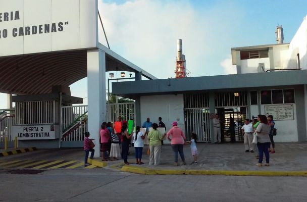 Manifestación en la Refinería Lázaro Cárdenas de Minatitlán.