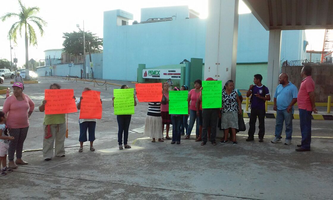Minatitlán, Veracruz.- Desde tempranas horas, un pequeño grupo de vecinos que viven al lado de la Refinería Lázaro Cárdenas de Minatitlán hicieron una manifestación con pancartas, exigiendo mayor seguridad en las actividades industriales de estas instalaciones de Pemex.