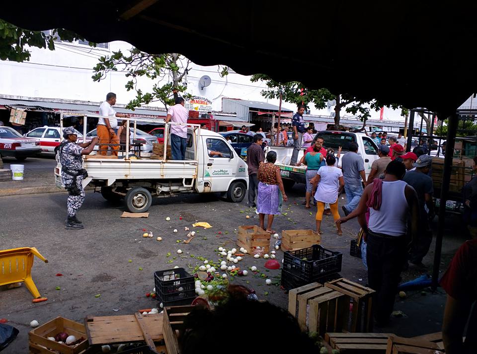 Este mediodía se suscitó un inédito enfrentamiento a tomatazos y verdurazos contra funcionarios de la dirección de comercio del Ayuntamiento, por parte de los ambulantes que operan afuera del mercado Morelos