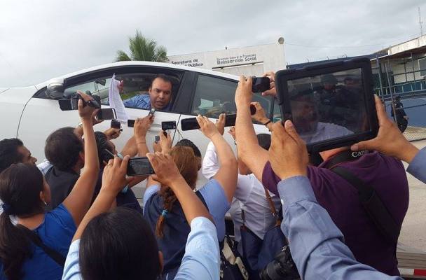Al llegar al CERESO Duport Ostión, una decena de reporteros lo aguardaban con quienes realizó una breve rueda de prensa, argumentando que su detención era completamente ilegal pues gozaba de un amparo concedido por un juez federal.