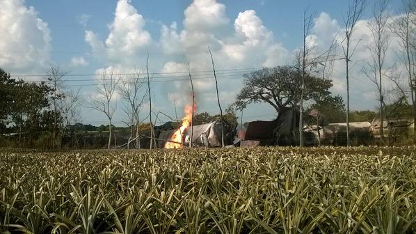 En un tramo ferrocarrilero de José Azueta, Veracruz, se descarriló el tren cargado de Oxido de Etileno. Explotó uno de los ferro tanques.