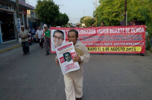 Marcha de apoyo por la aparición del Maestro Aristeo Hernández Facundo, en el marco del Paro Nacional Magisterial contra la reforma educativa y el 523 conmemoración de la lucha de resistencia indígena popular contra la invasión española en 1492, este pasado 12 de octubre de 2015 (FOTO DE MARIO DIAZ)