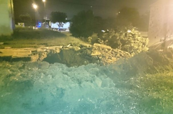 Debido a las fuertes lluvias que se han precipitado sobre la región, las corrientes de agua reblandecieron el suelo y los canales de desahogo pluvial, por lo que abrió un enorme boquete en la calle Andador y Ciruelos en el fraccionamiento Naranjito en Cosoleacaque.