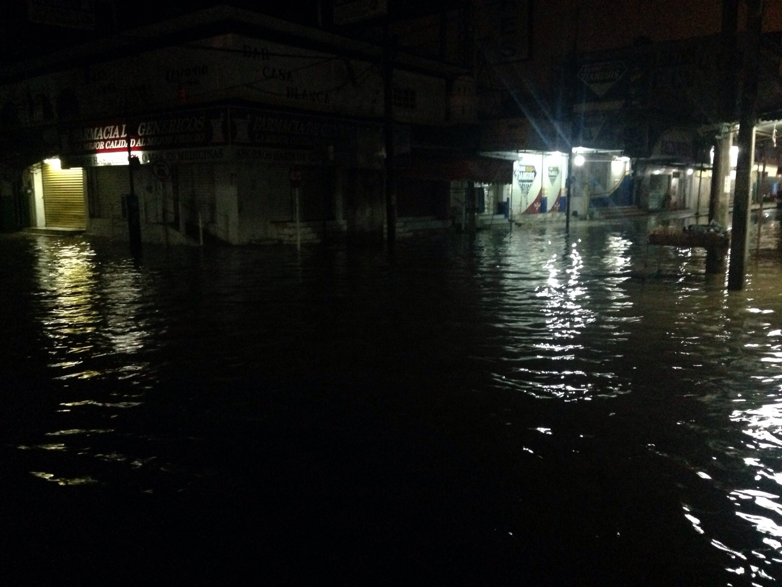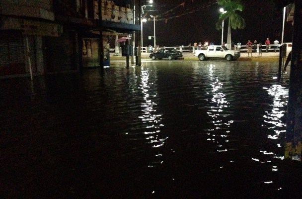 Toda la zona comercial del centro, ubicada en los márgenes del río, ya empiezan a sufrir los estragos de las inundaciones: las calles se encuentran inundadas, anegadas por el agua del río Coatzacoalcos.