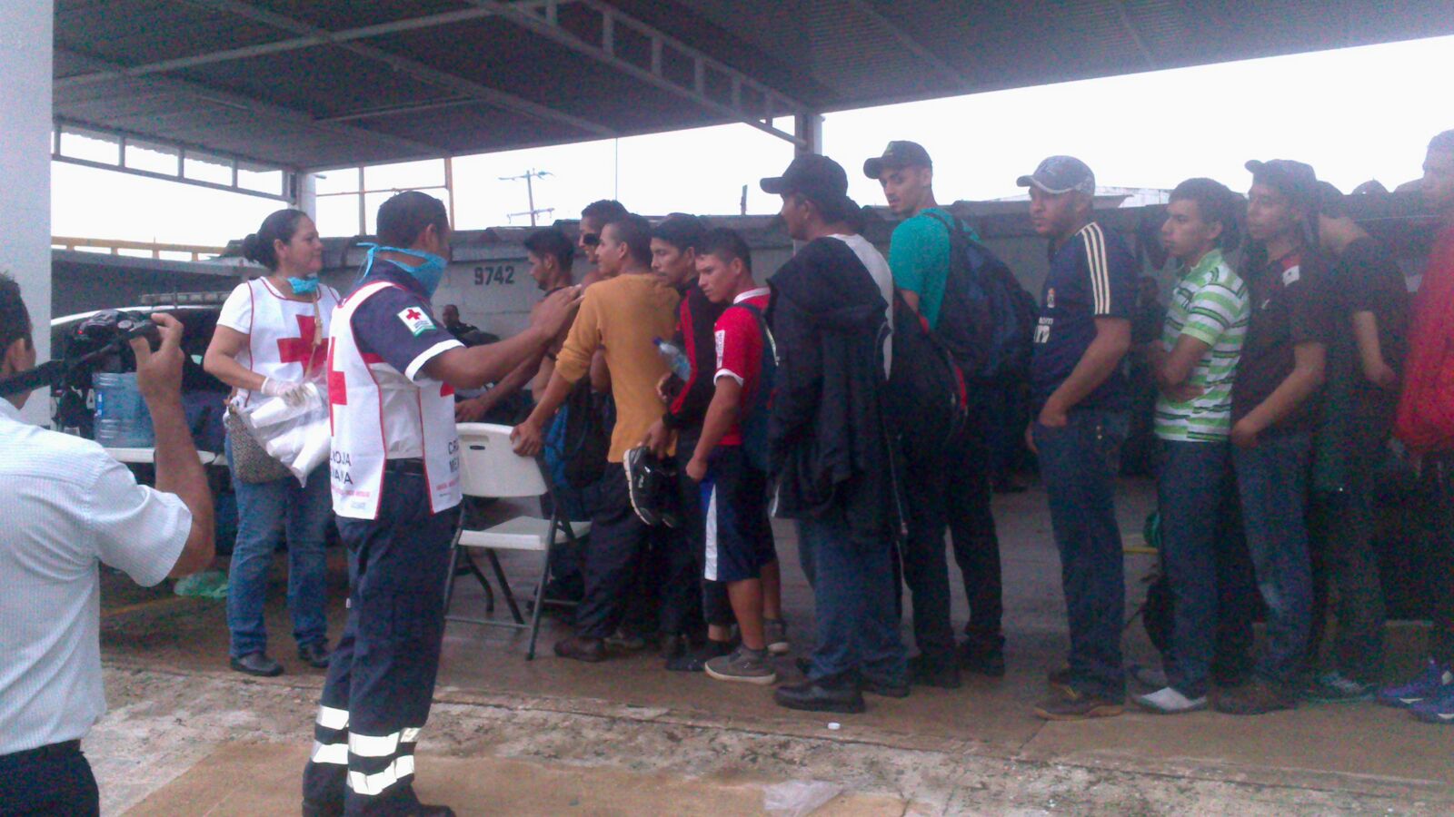 Elementos dela Cruz Roja Mexicana proporcionaron atención médica a los ilegales; les dieron agua, alimentos así como servicio médico pues mostraban cuadros severos de deshidratación.