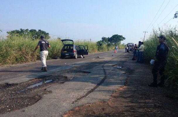 Vehículo rafagueado en Las Matas, de la carretera Coatzacoalcos-Minatitlán.