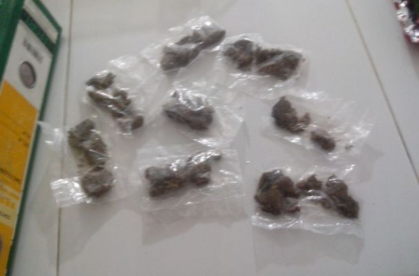 La policía naval descubrió que en su mano izquierda sostenía una bolsa de color roja con la leyenda DORITOS NACHOS y al mostrar el interior de la bolsa sacó ocho bolsas transparentes que contiene hierba seca al parecer del tipo cannabis.
