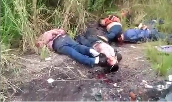 Según el reporte policiaco, los cuerpos pertenecen a hombres cuya edad oscila entre los 20 y 40 años, estaban vestidos, con las manos atrás y amarradas, un disparo en la sien, que presuntamente se los dieron en el lugar donde fueron arrojados, su identidad es desconocida.