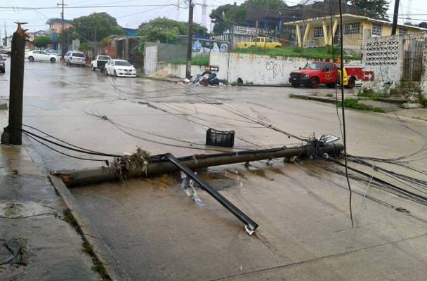 Caen postes de luz y árboles, así como inundaciones de avenidas con vehículos varados, es el saldo de las lluvias en Coatzacoalcos. (Foto En Coatza)