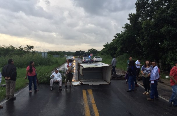 Bloquean carretera Antigua Coatza-Mina; exigen sus pozos de agua