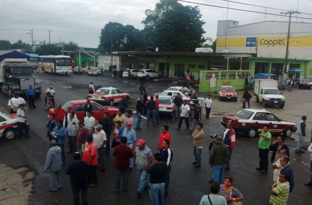 Jáltipan, Ver.- En estos momentos aproximadamente 70 taxistas con sus unidades se encuentran en el domo frente a oficinas del Ministerio Público de Jáltipan para bloquear la carretera federal a la altura de la calle Morelos.