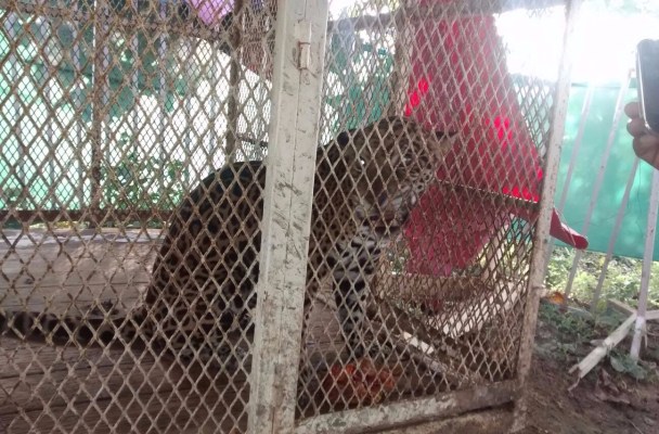 Encontraron un jaguar enjaulado en una vivienda en el ejido de Guillermo Prieto.
