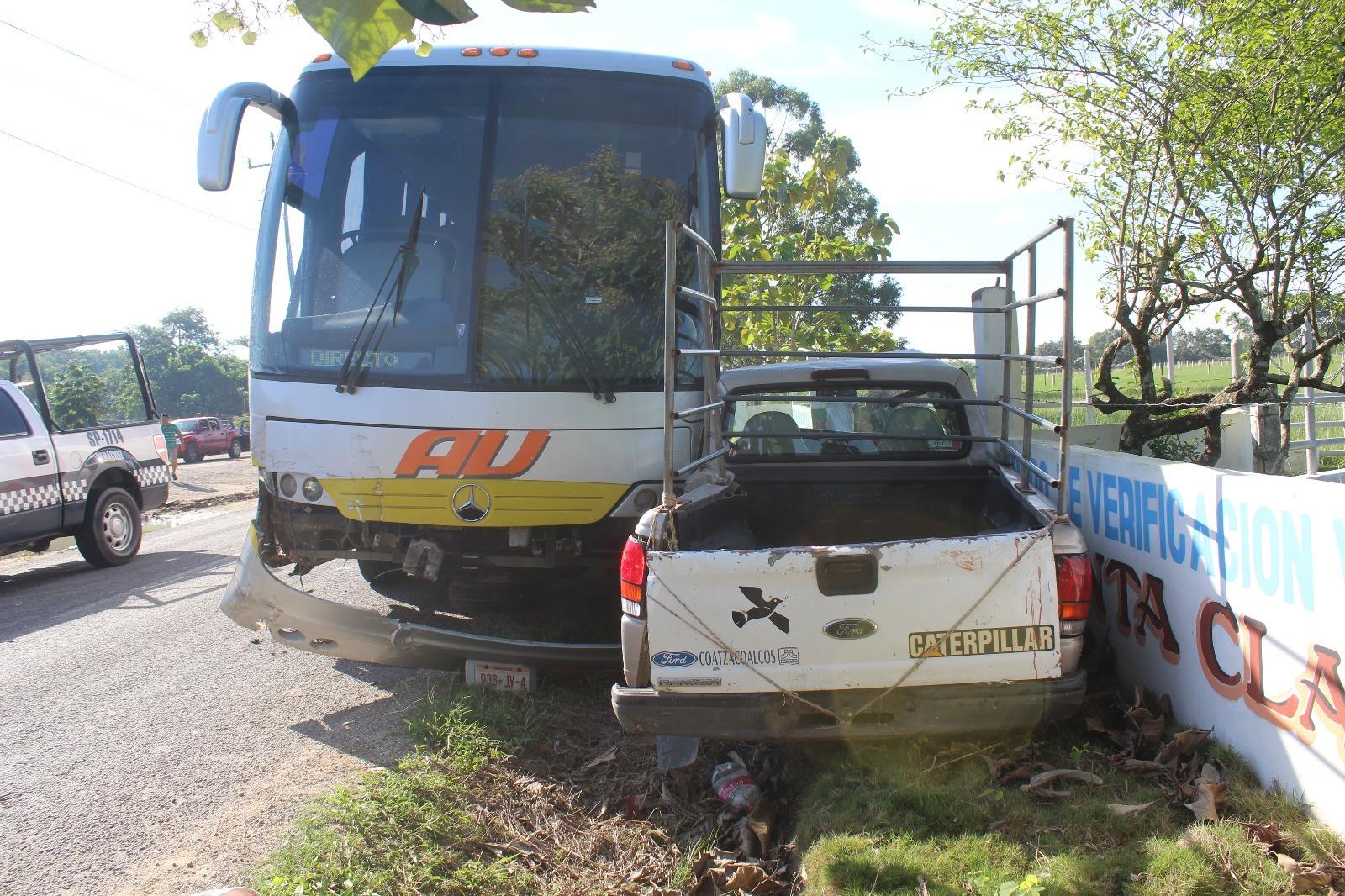 Las Choapas, Ver.- Un autobús AU, de la línea Autobuses de Oriente (ADO) embistió ayer a una camioneta Ranger, en la que viajaba una familia, entre ésta dos menores de edad, por lo que resultaron gravemente lesionados, en hechos ocurridos sobre la carretera Las Choapas-Paralelo. El conductor responsable se dio a la fuga a bordo de otro autobús de la misma empresa.