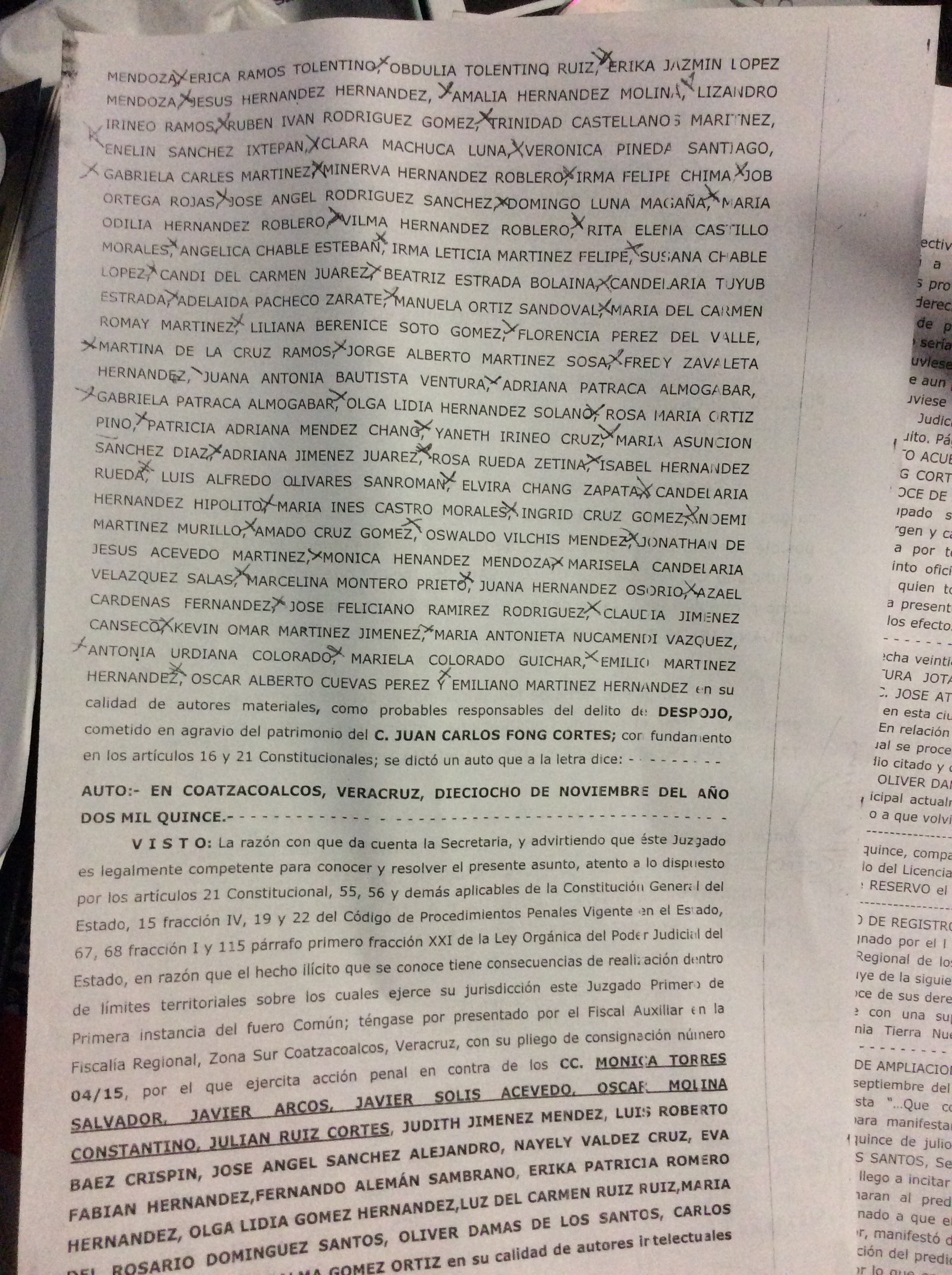 Los demás indiciados de este ilícito, como autores materiales e intelectuales son: Mónica Torres Salvador, Javier Arcos, Javier Solís Acevedo, Oscar Molina Constantino, Julián Ruiz Cortés, Judith Jiménez Méndez, Luis Alberto Baez Crispín, José Angel Sánchez Alejandro, Nayeli Valdéz Cruz, Eva Fabián Hernández, Fernando Alemán Sambrano, Erika Patrica Romero Hernández, Olga Lidia Gómez Hernández, Luis del Carmen Ruiz Ruiz, Carlos Angel Gómez Ortiz, Alma Gómez Ortiz y María del Rosario Domínguez Santos.