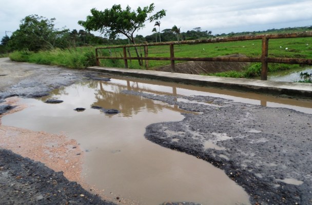 Con enormes cráteres el antiguo tramo carretero Mundo Nuevo-Nanchital.