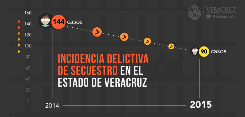 De manera específica, indicó que en el periodo 2010-2015, en el estado de Veracruz se han registrado 511 casos de secuestro, siendo el pico más alto el año pasado, cuando se registraron 144 casos.