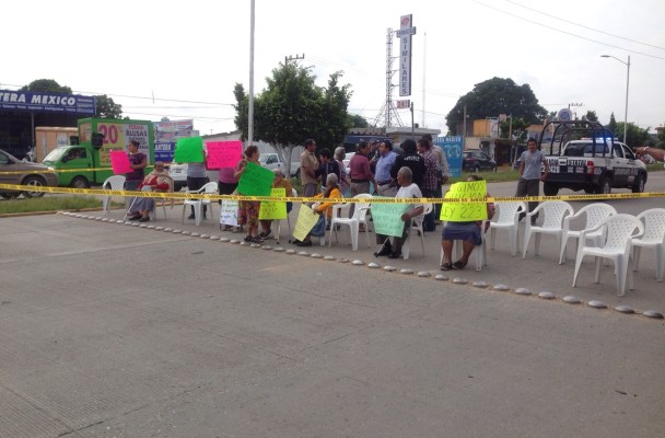 Cosoleacaque, Ver. Un grupo de alrededor 15 personas de la tercera edad se manifestaron esta mañana bloqueando el bulevar Institutos Tecnológicos, como reclamo al Instituto de Pensiones del Estado para que les deposite su pensión vitalicia que establece la ley 223.