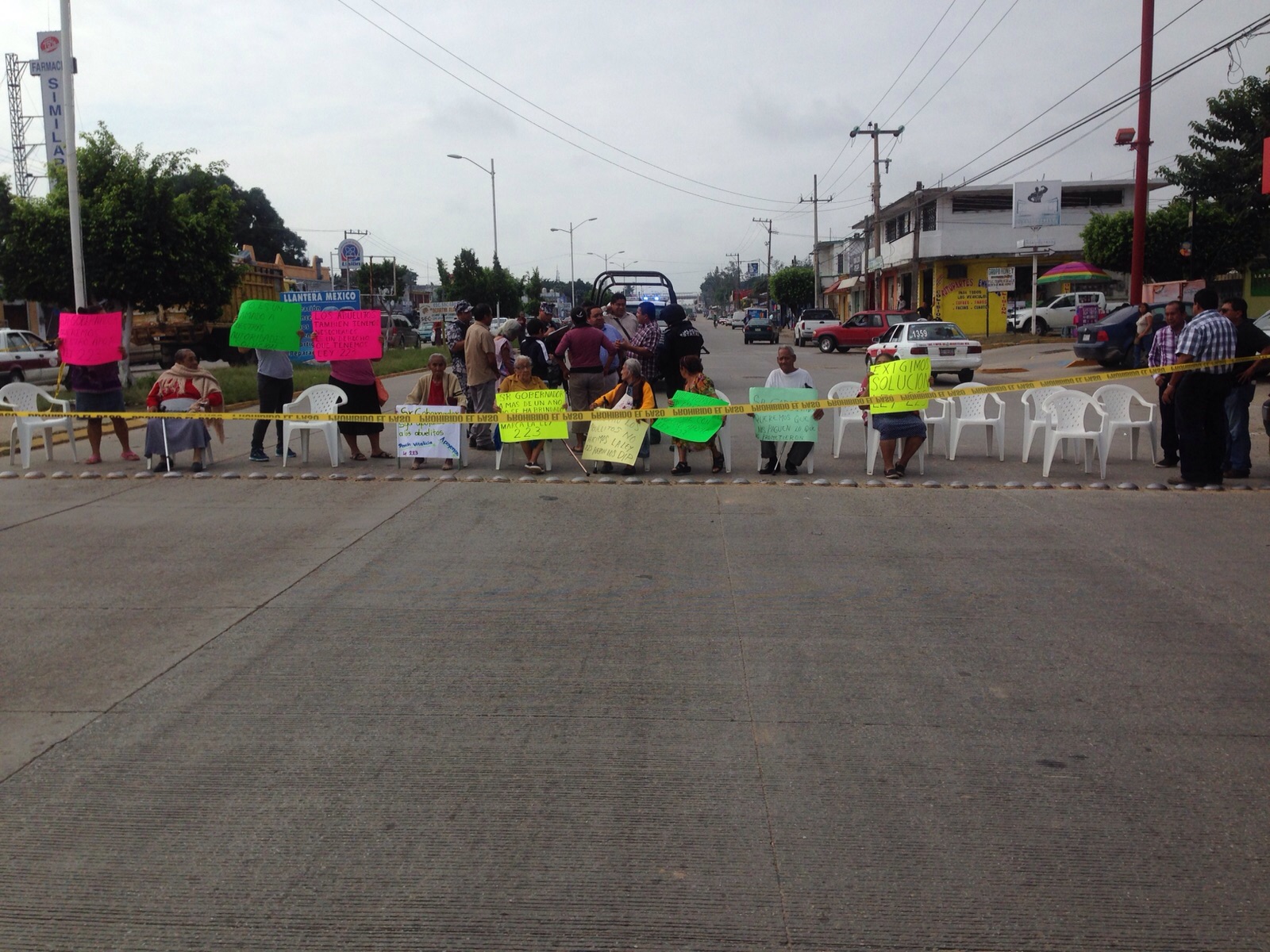 Con pancartas, cartulinas, los abuelitos se plantaron sobre la avenida cerrando el paso a todos los automovilistas.