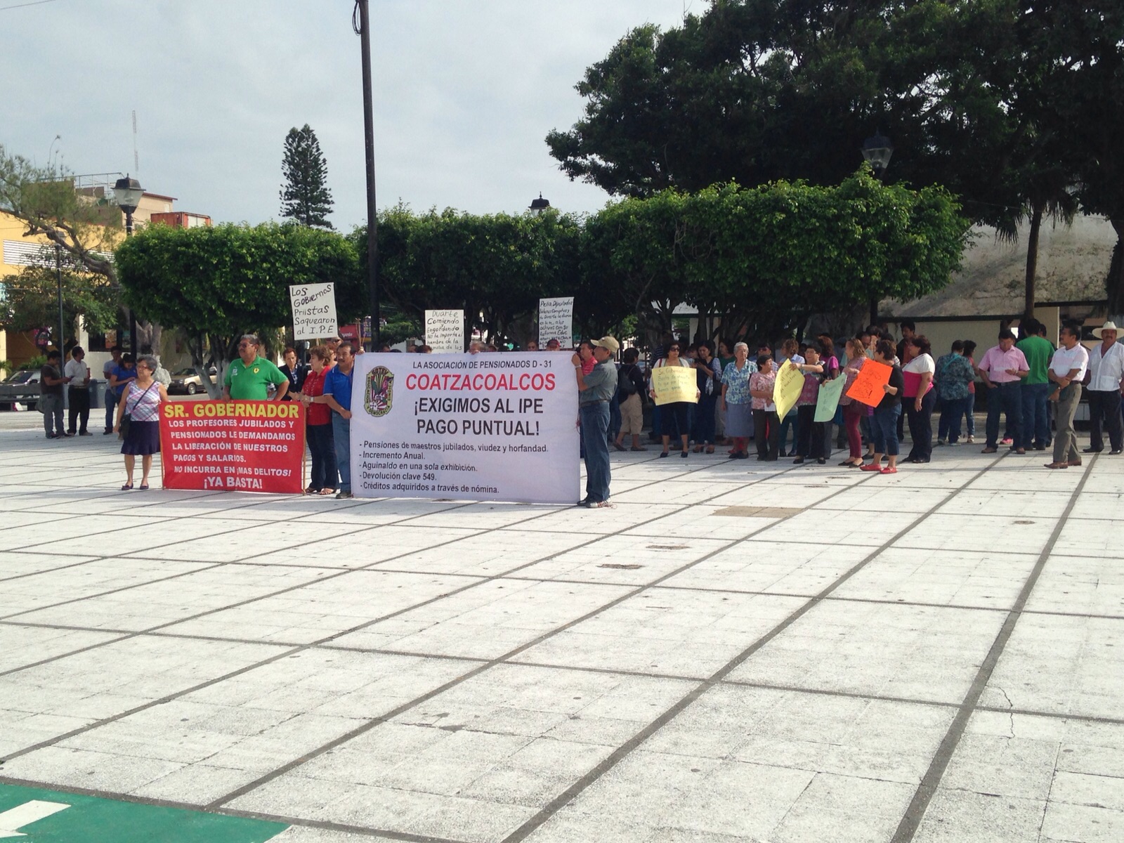 Con lonas, pancartas de protesta, con gritos, los profesores jubilados-pensionados reclamaron la liberación de sus pagos y salarios conforme al Derecho vigente.