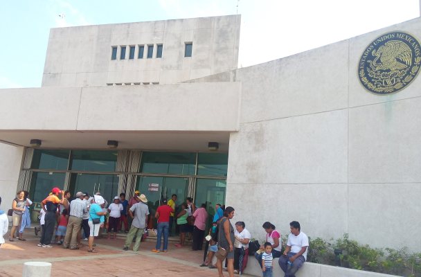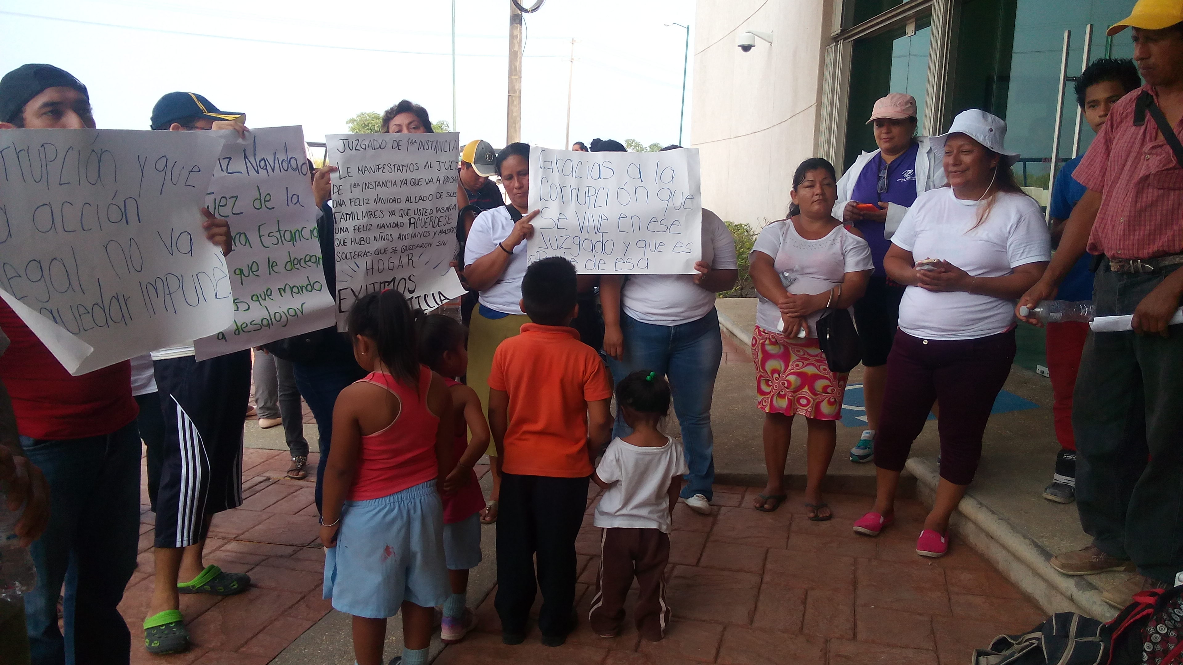 Coatzacoalcos, Ver.- Más de 30 familias que fueron desalojadas del predio Los Almendros realizaron un plantón frente a las instalaciones del Palacio de Justicia Federal en reclamo que el juez primero de primera instancia violó un amparo federal cuando mandó a destruir todas sus casas de lámina que ocupaban en un terreno que supuestamente es propiedad de Manuel Bringas Burelo.