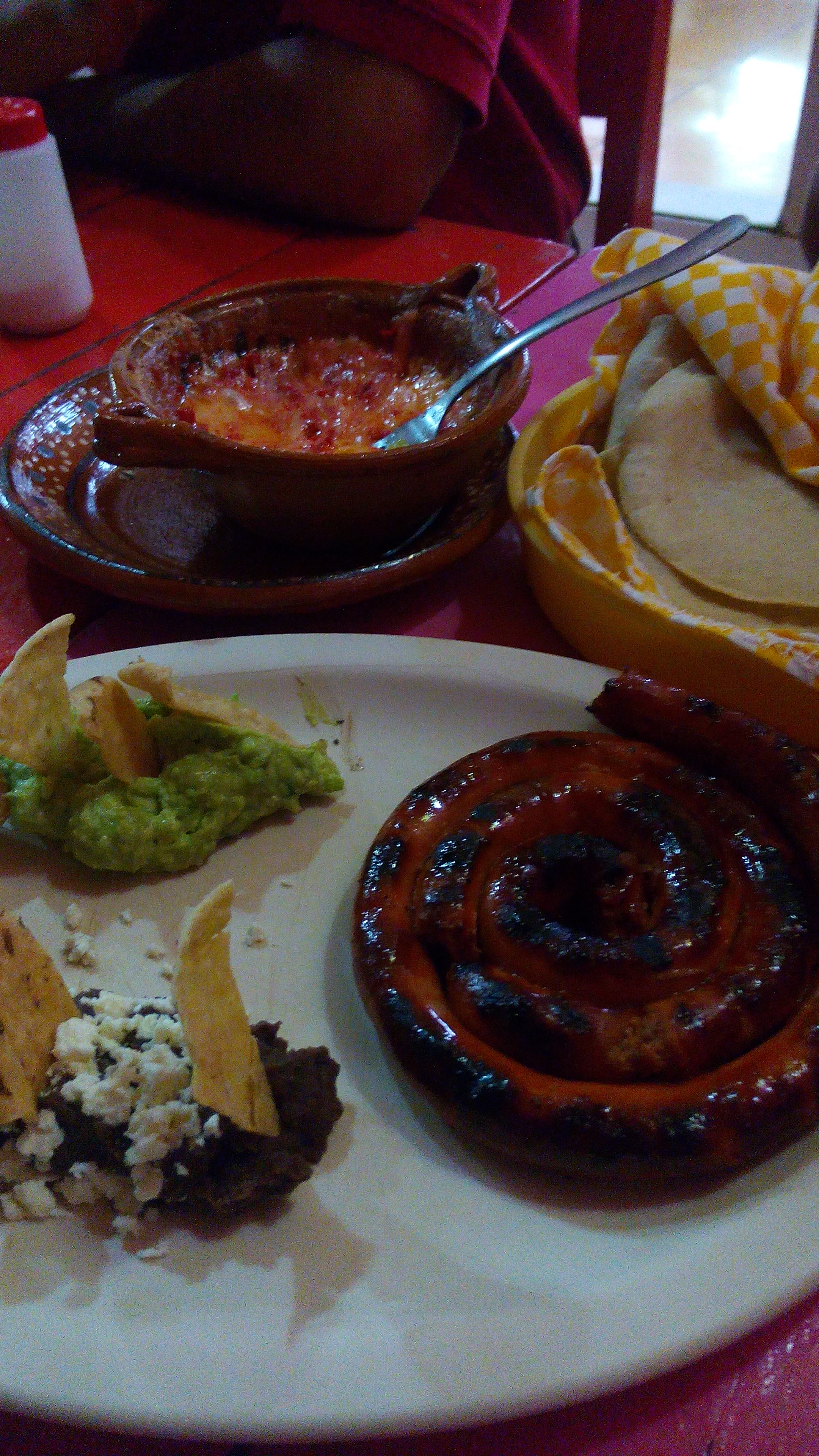 La tradicional chistorra, uno de los exquisitos platillos de El Jacal, Tacos Selectos.