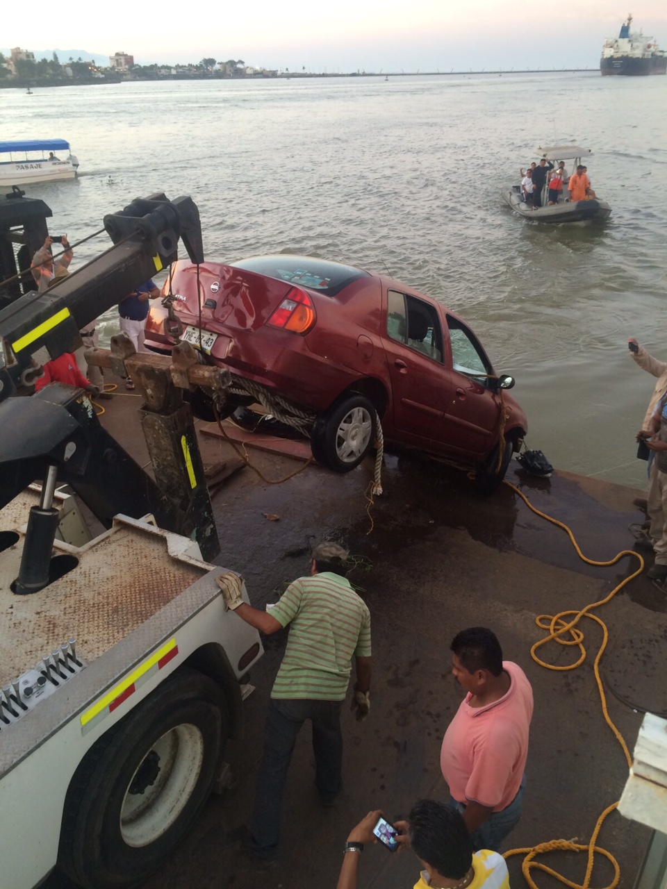 Horas más tarde, después de intensas maniobras, con ayuda de buzos de la Secretaría de Marina-Armada de México y con el uso de una grúa del Ayuntamiento, el vehículo fue sacado del agua.