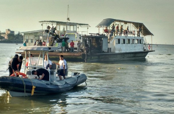 Conductor adolescente mete reversa por error y cae al río desde el transbordador
