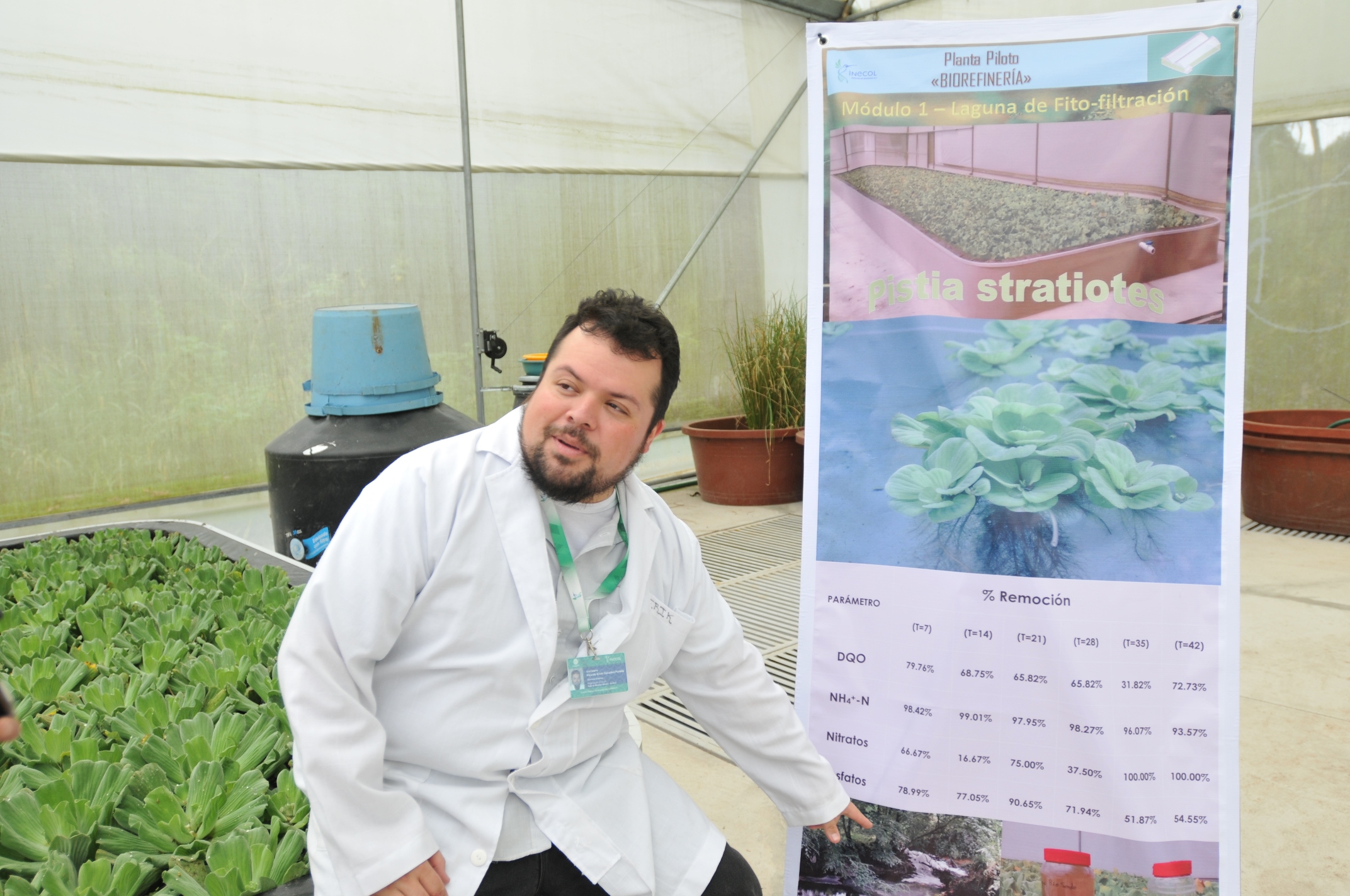 El río Sordo se contamina con el río Carneros, así que a través de un sistema de pretratamiento con las raíces de una planta llamada “lechuga de agua”, lechuguilla, repollo de agua, repollito de agua, (Pistia stratiotes) se hace un filtro natural y ayuda a sedimentar el exceso de nutrientes y sólidos suspendidos para obtener un agua que puede ser aprovechada por las microalgas.