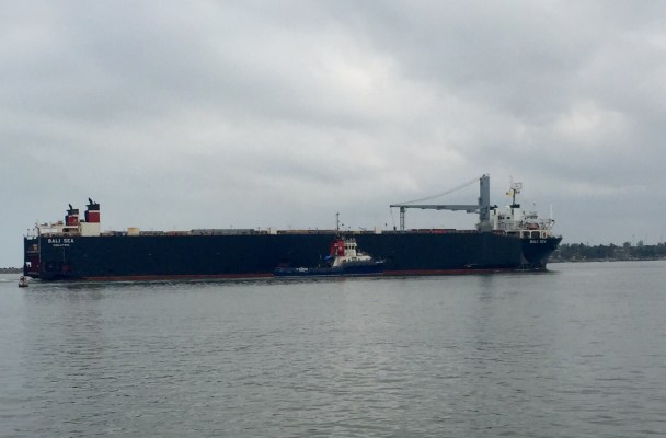 Coatzacoalcos, Ver.–Con una falla en uno de sus motores entró al puerto de Coatzacoalcos, el ferrobuque de carga Banda Sea.