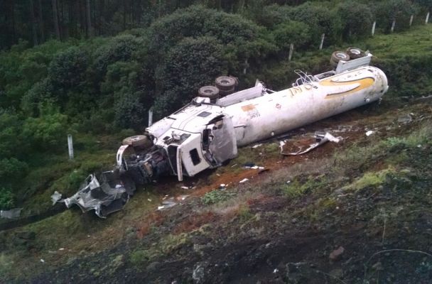 El tráiler cargado del combustóleo se salió hacia el barranco; no hay fuga de gas