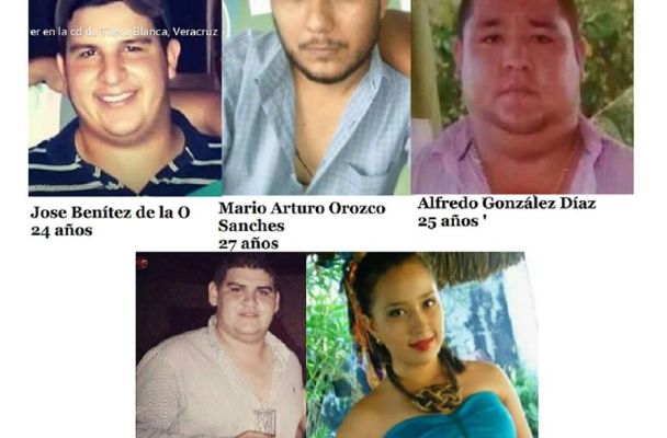 Desde el pasado 11 de enero, se reportó la desaparición de cinco jóvenes que presuntamente fueron detenidos por policías estatales en el municipio de Tierra Blanca. Hasta el momento se desconoce el paradero de José Benítez de la O, de 24 años; Mario Arturo Orozco Sánchez, de 27; Alfredo González Díaz, de 25; Bernardo Benítez Arróniz, de 25, y Susana Tapia Garibo, esta última de 16 años.