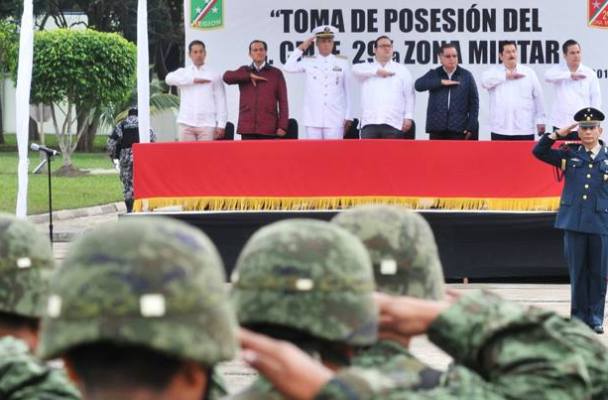 Minatitlán, Ver.– En Veracruz no se permitirá que ningún servidor público defraude la confianza de los ciudadanos; respaldamos la creación de la Policía Estatal Única, a fin de combatir la inseguridad y, de manera particular, a grupos delincuenciales, así lo declaró el Gobernador del Estado durante la toma de posesión y protesta del General Brigadier Diplomado de Estado Mayor Cruz Eduardo Vega Rivera como nuevo Comandante de la 29 Zona Militar.