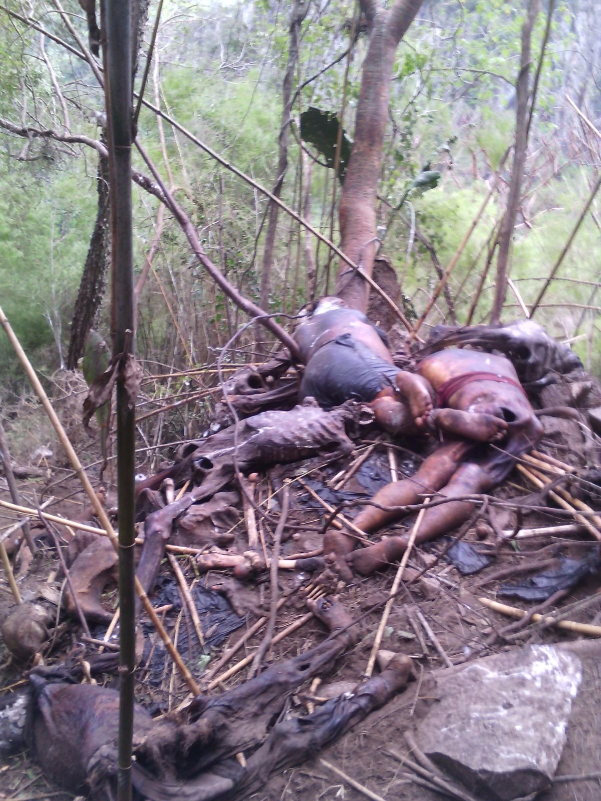 Algunos de los restos humanos hallados son de reciente condición, pero otros ya presentan estado de putrefacción y descarnados en osamentas.