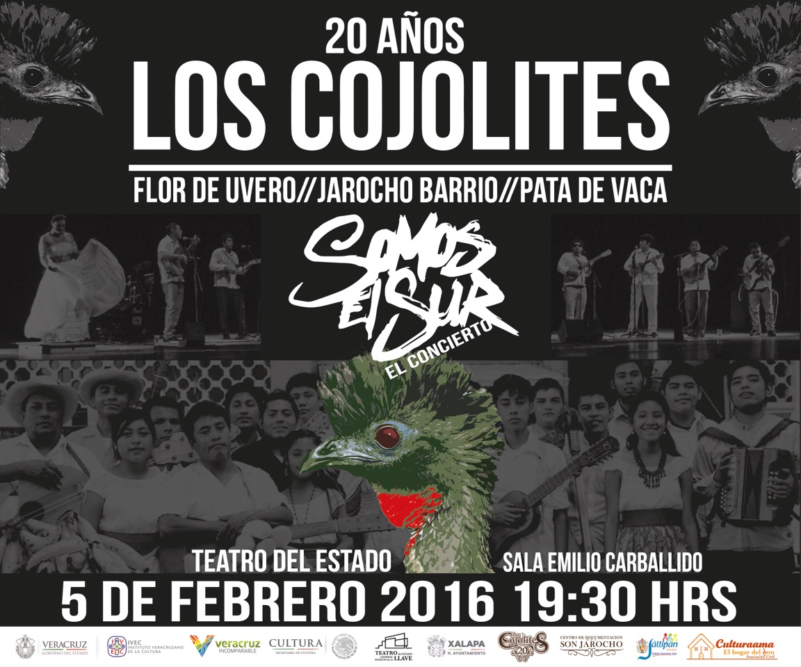 Xalapa, Ver.- Los Cojolites celebrarán 20 años de existencia con el espectáculo Somos el Sur, el viernes 05 de febrero a las 19:30 horas, en la sala Emilio Carballido del Teatro del Estado, con el respaldo del Instituto Veracruzano de la Cultura (IVEC), la Secretaría de Cultura, los ayuntamientos de Xalapa y Jáltipan, Culturaama, y el Centro de Documentación del Son Jarocho.