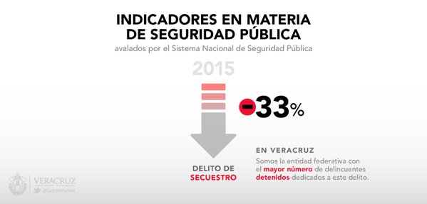 Este avance en el combate a la delincuencia coloca a Veracruz como el tercer mejor estado en la reducción de víctimas de delitos, y también el tercero con menor incidencia delictiva nacional, según la Encuesta Nacional de Victimización y Percepción sobre Seguridad Pública 2015 (ENVIPE) realizada por el Instituto Nacional de Estadística y Geografía (INEGI).