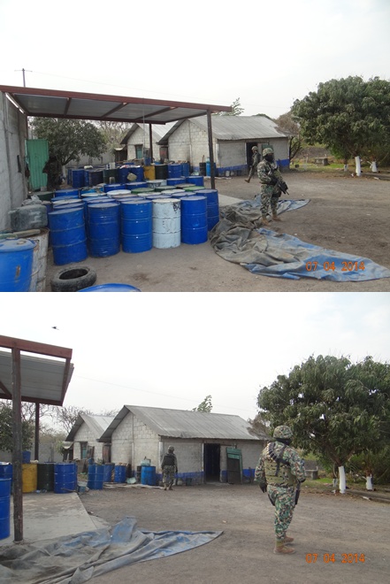 PGR asegura más de 20 mil litros de químicos para hacer drogas en Tierra Blanca