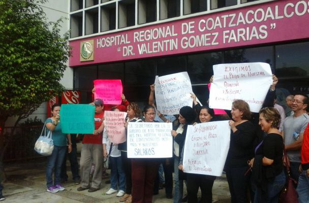 Coatzacoalcos, Ver.– Durante esta mañana, más de 90 trabajadores de los servicios médicos del Hospital Regional Valentín Gómez Farías, en esta ciudad, pararon labores y se manifestaron debido a que la Secretaría de Salud no les depositó su salario.