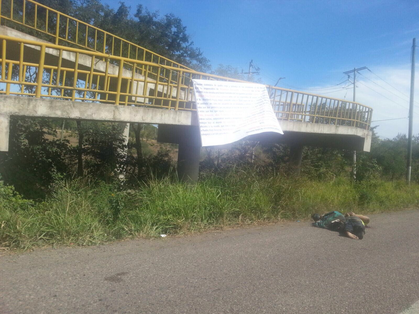 Aparece narco-manta con un ejecutado en Pueblo Viejo, al norte de Veracruz
