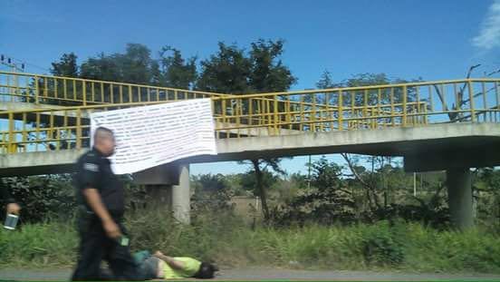 Aparece un ejecutado con narco manta, al norte de Veracruz. En Pueblo Viejo. Es de los Zetas,