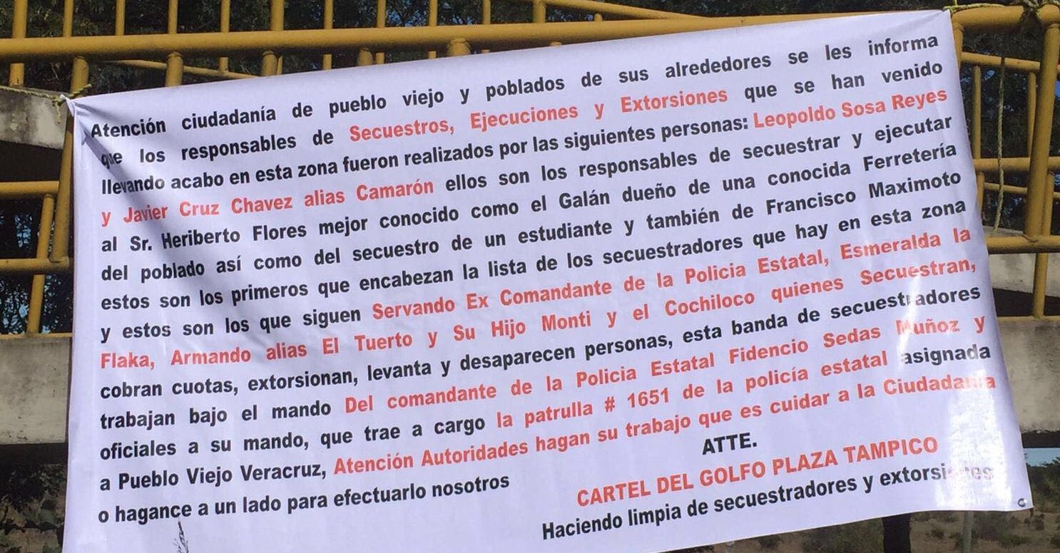Pueblo Viejo, Veracruz. A continuación reproducimos el mensaje de la narco-manta: