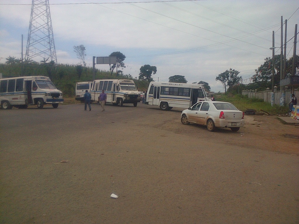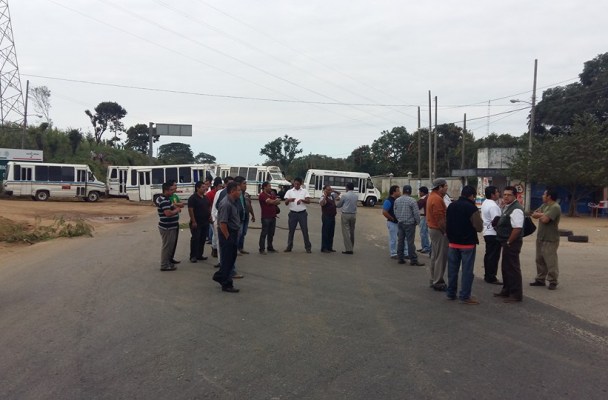 Alrededor de 12 microbuses de transportes Lancero de Cosoleacaque exigen que se retire su competencia, la línea transportista Santa Clara al cual acusan de invadirles su ruta.