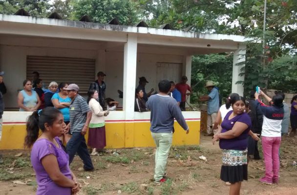 Toman instalaciones de la junta de Mejoras en Mecayapan, en la comunidad de Tonalapan.