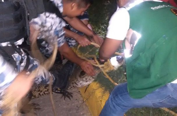 Luego de realizar algunos maniobras, y utilizando una cuerda pudieron atrapar al cocodrilo moreleti que en las próximas horas será llevado a un lugar donde reciba el tratamiento adecuado.