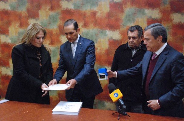 Los presidentes de la Mesa Directiva de la LXIII Legislatura, Octavia Ortega Arteaga, y de la Junta de Coordinación Política del Congreso del Estado, Juan Nicolás Callejas Arroyo, así como el secretario general, Francisco Portilla Bonilla, recibieron el documento.