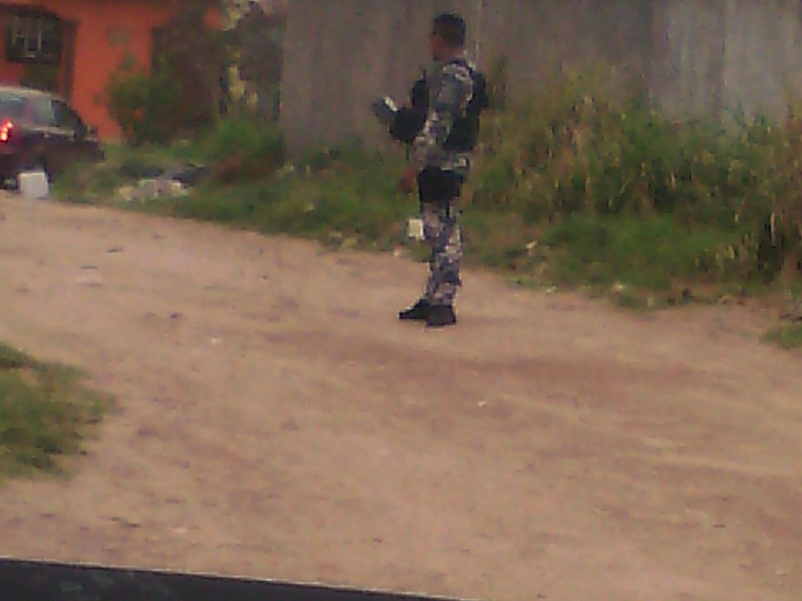Policías Navales buscan el arma punzo cortante con la que el sujeto hirió a su esposa.