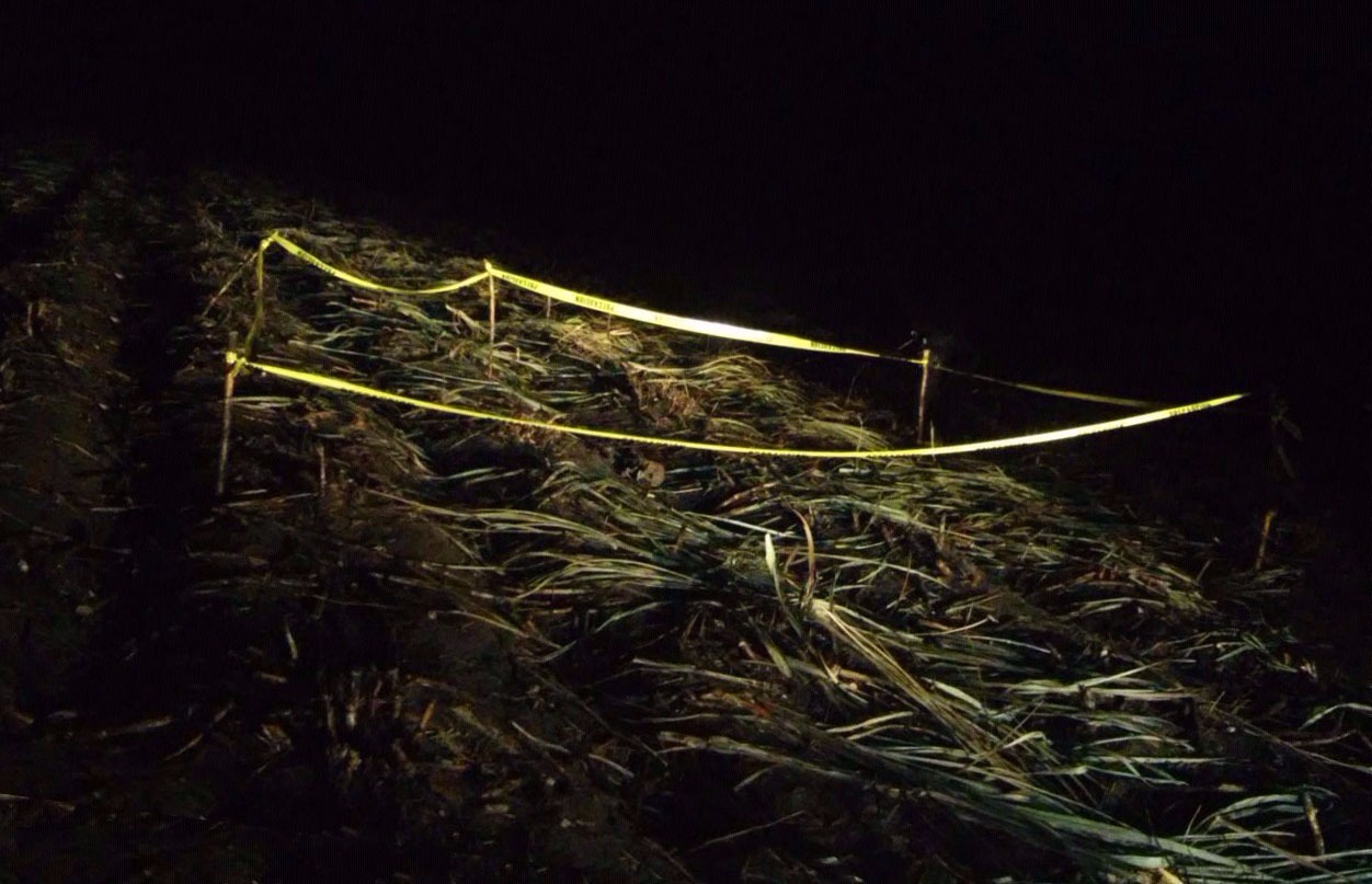 Fue la noche de este inicio de semana, este lunes, cuando campesinos que se encontraban realizando el corte de la gramínea, en un predio ubicado a un costado del camino de terracería que comunica a las localidades de El Sauzal a Juan Díaz Covarrubias.