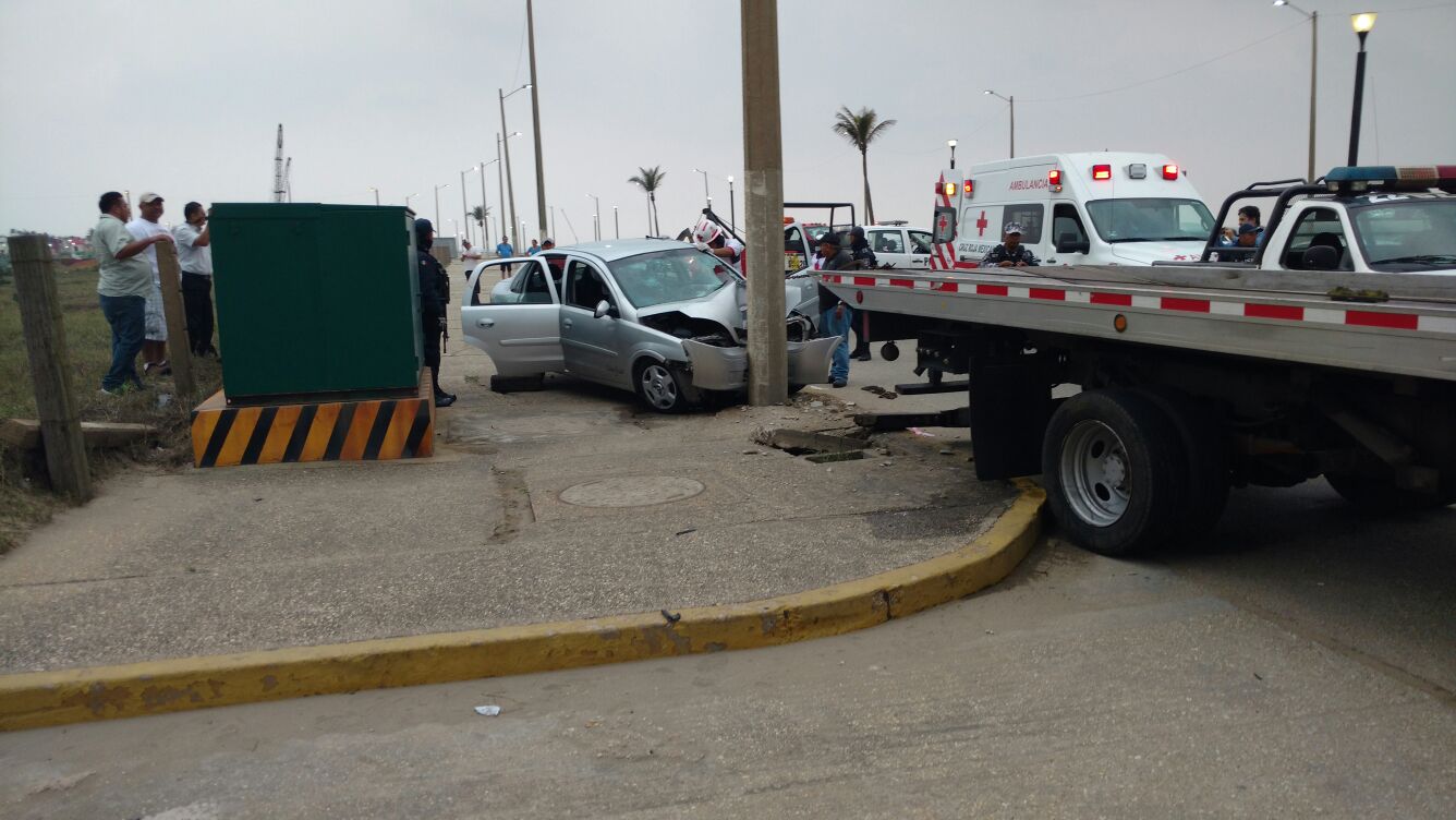 El apoyo se canalizó a elementos de la Policía Naval y paramédicos de la Cruz Roja, quienes a su arribo encontraron un automóvil Chevrolet, tipo Corsa, color gris, placas de circulación YHD4321, el cual estaba chocado contra el poste de concreto, propiedad de la Comisión Federal de Electricidad (CFE), ubicado en la esquina del malecón con la calle Carlos Gómez, de la colonia Petroquímica.