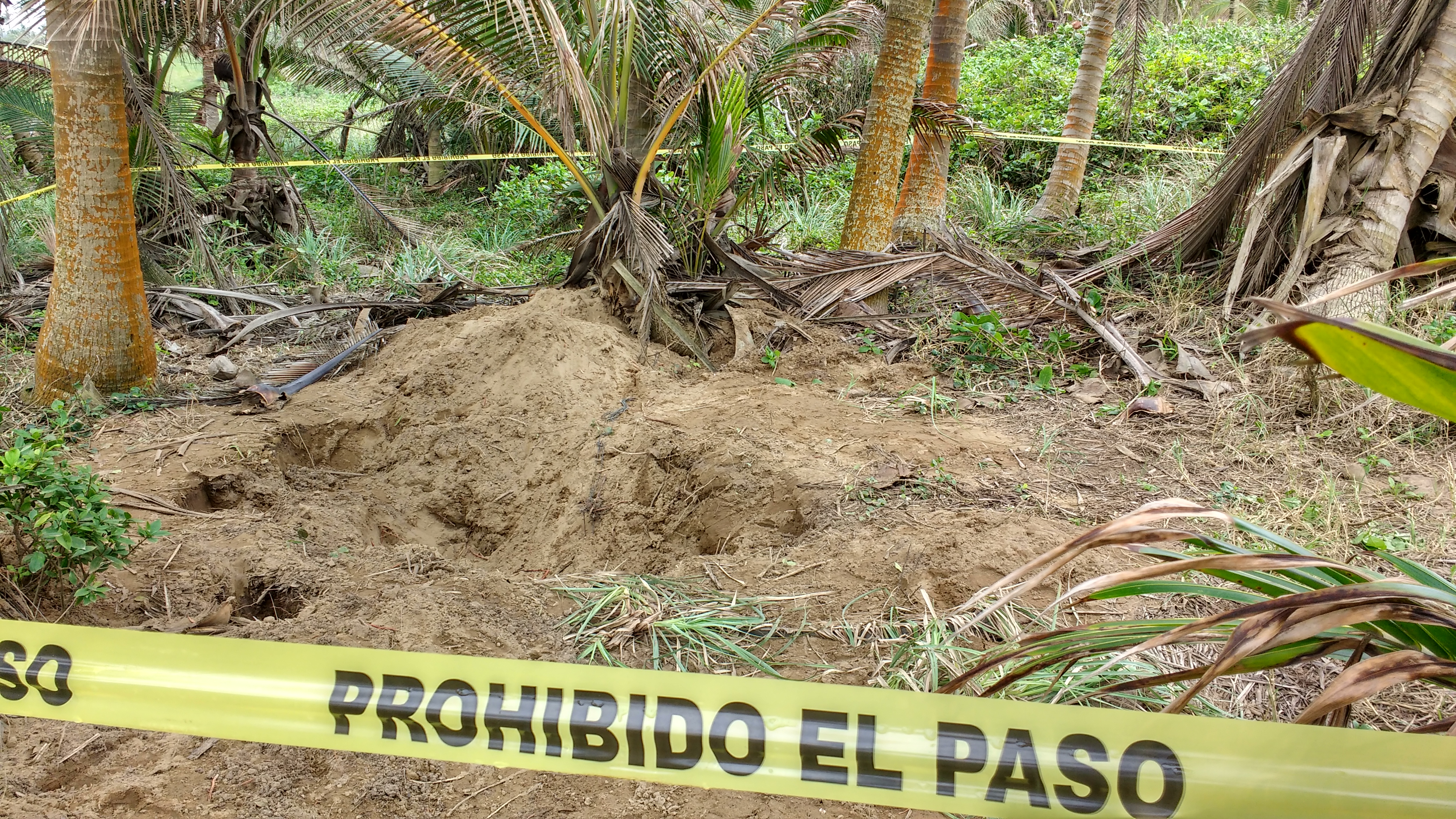 La fosa en cuestión fue localizada el sábado en un rancho dedicado a la cría de ganado y el cultivo de palmeras, a unos 100 metros de las aguas del Golfo de México, y a 30 minutos del ejido El Tortuguero, del municipio de Agua Dulce.