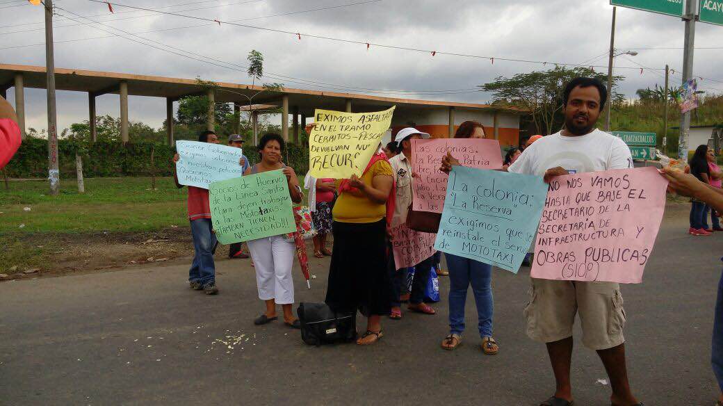 Entre las demandas de los protestantes están les permitan a 30 motocicletas dar el servicio de moto taxis en el municipio de Cosoleacaque, transporte mixto rural en comunidades de la Sierra de Soteapan, escuelas en esa zona así como la aplicación de programas sociales.