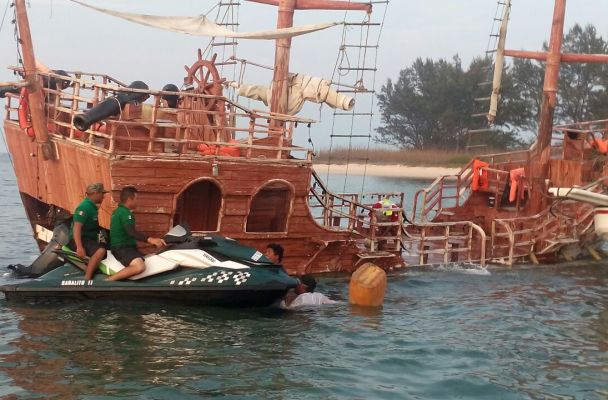 La embarcación simulaba un galeón español.
